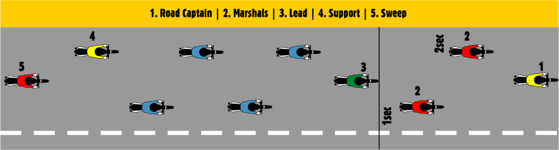 - Formation Keepers: Marshals encourage staggered riding, helping to maximize visibility and maintain organized spacing.
