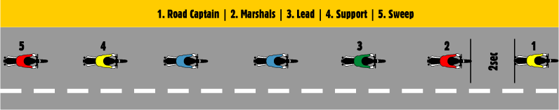 The Lead is at the front, responsible for setting the tone of the ride.
